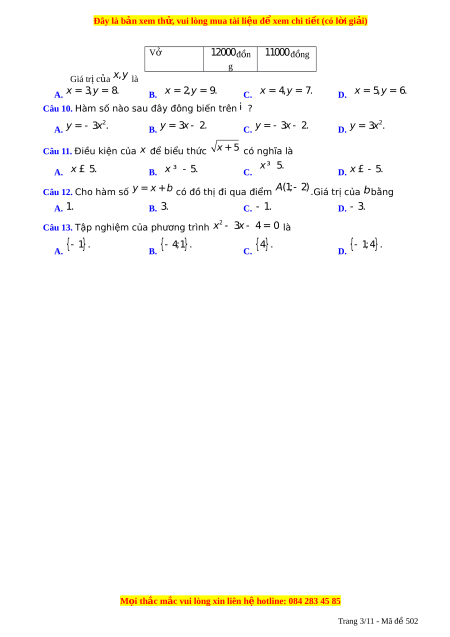 Đây là bản xem th , vu ử i lòng mua tài li u ệ đ xe ể m chi ti t ế (có l i ờ gi i ả ) Vở 12000đ n ồ 11000đ ng ồ g Giá tr c ị ủa , x y là