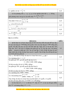 ủ Nam là: 9600 y (đ ng) ồ Ta có phư ng t ơ rình: 8800x 9 600 y 0,25 x y 2 x 24 Ta có hệ phư ng t ơ rình: 8800x 9600y 0 y 22 0,25 Vậy s t ố ập c a