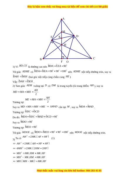 ủ BC và AH . Ch ng m ứ inh rằng: T gi ứ ác MDOE n i ộ ti p. ế 2 AH 2
