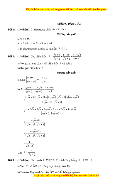 Đây là bản xem th , vu ử i lòng mua tài li u ệ đ xe ể m chi ti t ế (có l i ờ gi i ả ) HƯỚNG D N Ẫ GI I Ả Bài 1: (1.0 đi m) ể . Giải phư ng t ơ rình: 4x 3 2 x