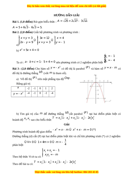 Đây là bản xem th , vu ử i lòng mua tài li u ệ đ xe ể m chi ti t ế (có l i ờ gi i ả ) HƯ NG Ớ D N Ẫ GI I Ả Bài 1. (1,0 đi m ể ) Rút g n ọ bi u ể th c