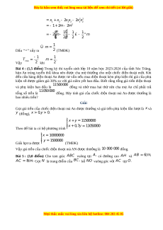 ïíïx+0,7y=11050000 Theo đ ề bài ta có h ệ phư ng ơ trình ïî ìï x = 10000000 ïíï y =1500000 Giải hpt ta đư c ợ ïî (TMĐK) Vậy giá ti n ề c a ủ chi c ế đi n ệ tho i ạ mà AN đư c ợ thư ng ở là 10 000 000 đồng. Bài 5 : (3,0 đi m