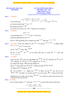 Đề thi vào 10 Toán Tỉnh Thái Bình năm 2023-2024