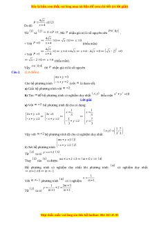 b) Tìm m để hệ phư ng t ơ rình có nghi m ệ duy nhất th a ỏ mãn x y 1 0 L i ờ giải a) V i ớ m 2 hệ phư ng ơ trình đã cho có dạng: 1 1 x x 2x y 3 3 x 1 3 3 x y 2 x y 2 1 7 y 2 y 3 3 1 7 ; x y ; Vậy v i ớ m 2 hệ phư ng ơ trình đã cho có nghi m ệ duy nh t ấ 3 3 . mx y 3 1 x y 2 2 b) Xét h ph ệ ư ng ơ trình 2 y x 2 3 T ừ ta có . 3 mx x 2 3 m 1 x 1 4 Thay vào 1 ta đư c ợ : 4 Hệ phư ng ơ trình có nghi m ệ duy nh t ấ khi phư ng ơ trình có nghi m ệ duy nh t ấ m 1 0 m 1 1 4 x V i