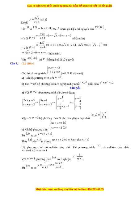 Đây là bản xem th , vu ử i lòng mua tài li u ệ đ xe ể m chi ti t ế (có l i ờ gi i ả ) HƯỚNG D N Ẫ GI I Ả Câu 1. (2,0 đi m) ể