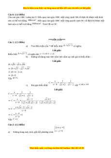 ứ A x 1 có nghĩa khi x 1 0 x 1 b) Không s d ử ng m ụ áy tính cầm tính c m ầ tay tính giá tr bi ị u t ể h c ứ : L i ờ giải: B 9 4 16 2 2 2 B 3 2 4 B 3 2 4 B 5 Vậy B 5 x 1 1 C c) Rút g n bi ọ u t ể h c ứ x 4 x 2 x 2 v i ớ x 0 ; x 4 L i ờ giải: x 1 1 C x 4 x 2 x 2 x x 2 x 2 C
