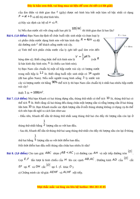 ể ban đầu mỗi thùng s a ữ ch a ứ bao nhiêu lít s a ữ ? (O) Bài 8. (3,0 đi m)