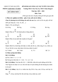 ĐỀ ĐÁNH GIÁ NĂNG LỰC DỰ TUYỂN VÀO LỚP 6