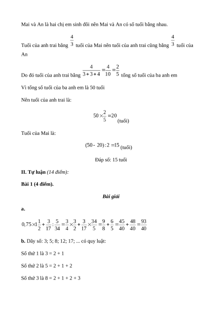 Câu 6 (1 điểm). Mai và An là hai chị em sinh đôi và họ có một anh trai. Tổng số tuổi của ba