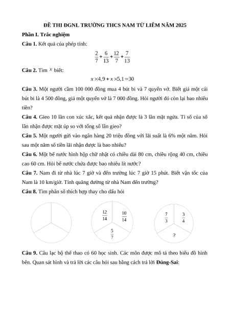 ĐỀ THI ĐGNL TRƯỜNG THCS NAM TỪ LIÊM NĂM 2025