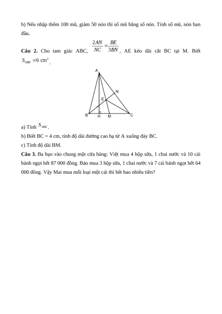 Câu 1. Một cửa hàng nhập về 2000 vật phẩm gồm mũ, áo, nón nhân dịp 30/4 - 1/5. Biết số áo bằng tổng.