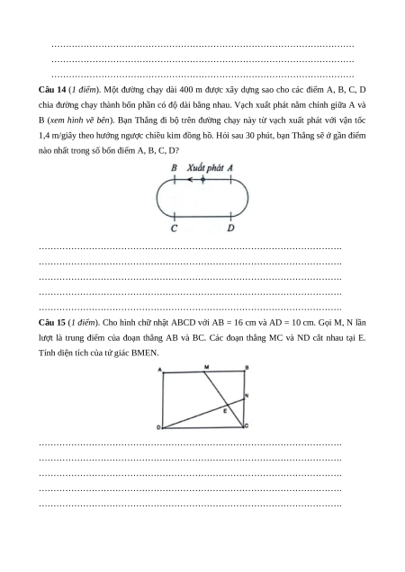 Câu 14 (1 điểm). Một đường chạy dài 400 m được xây dựng sao cho các điểm A, B, C, D