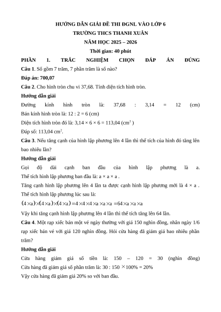 ĐỀ THI ĐGNL VÀO LỚP 6 - TRƯỜNG THCS THANH XUÂN
