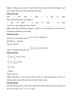 Câu 5. Trường Lan vào học lúc 7 giờ 30 phút. Hôm nay bạn Lan đến trường lúc 7 giờ