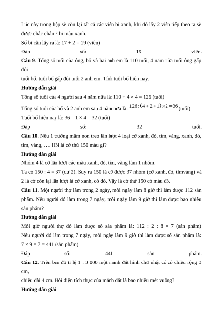 Câu 9. Tổng số tuổi của ông, bố và hai anh em là 110 tuổi, 4 năm nữa tuổi ông gấp đôi