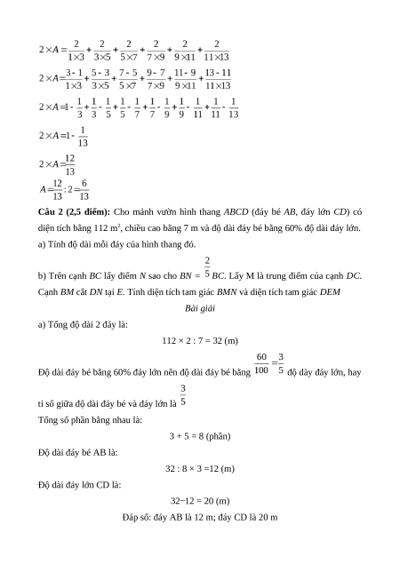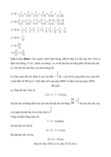 Cạnh BM cắt DN tại E. Tính diện tích tam giác BMN và diện tích tam giác DEM Câu 3. (1,5 điểm):