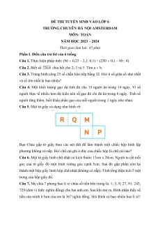 Đề thi vào lớp 6 Toán trường Amsterdam Hà Nội các năm