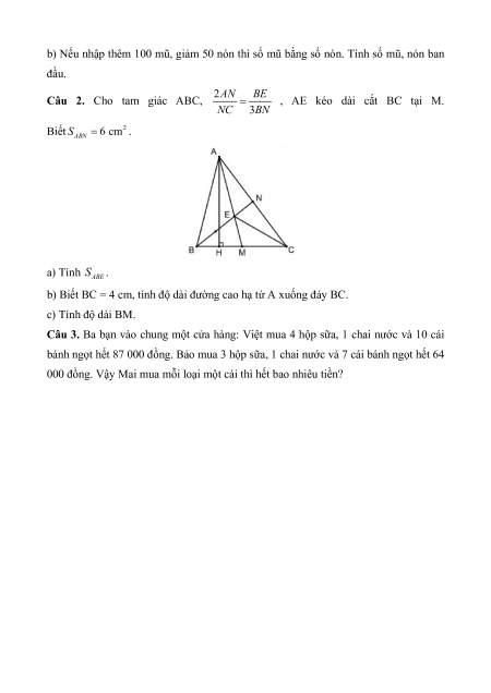 , AE kéo dài cắt BC tại M. NC 3BN Biết 2 S . ABN 6 cm a) Tính S . ABE