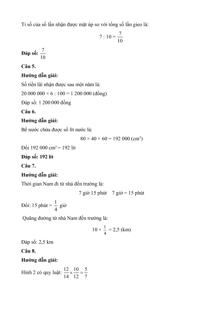 x 4,9 x 5,1 30 4,9 5, 1 x 30 x 30 x 30 :10 3 Đáp số: x = 3 Câu 3. Hướng dẫn giải: