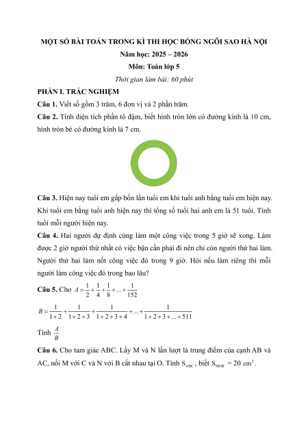 MỘT SỐ BÀI TOÁN TRONG KÌ THI HỌC BỔNG NGÔI SAO HÀ NỘI
