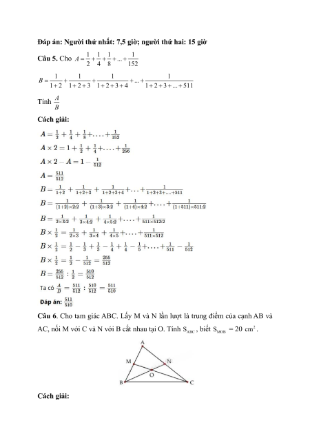 AC, nối M với C và N với B cắt nhau tại O. Tính S , biết S = 20 2 cm . ABC MOB PHẦN 2. TỰ LUẬN