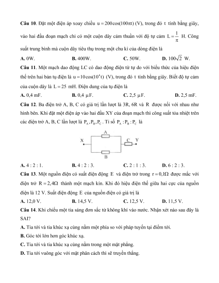 Câu 12. Ba điện trở A, B, C có giá trị lần lượt là 3R, 6R và R được nối với nhau như