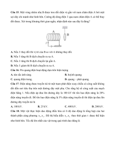 Câu 17. Điện năng được truyền tải từ một trạm phát điện xoay chiều có công suất không
