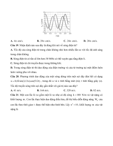 Câu 11. Một mạch dao động LC có dao động điện từ tự do với biểu thức của hiệu điện
