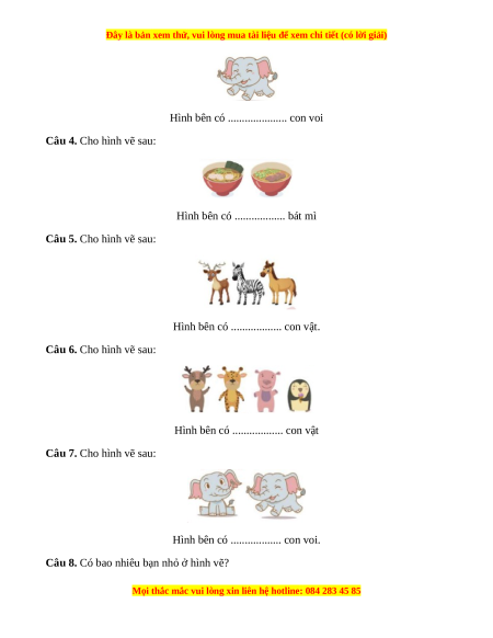 Câu 2. Có bao nhiêu con vật ở hình dưới?