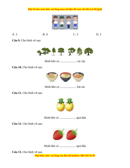 Câu 8. Có bao nhiêu bạn nhỏ ở hình vẽ?