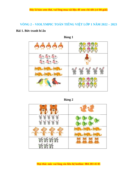 VÒNG 2 – VIOLYMPIC TOÁN TIẾNG VIỆT LỚP 1 NĂM 2022 – 2023