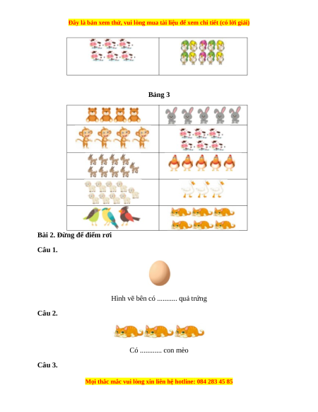 Hình vẽ bên có ........... quả trứng Câu 2. Có ............ con mèo Câu 3.