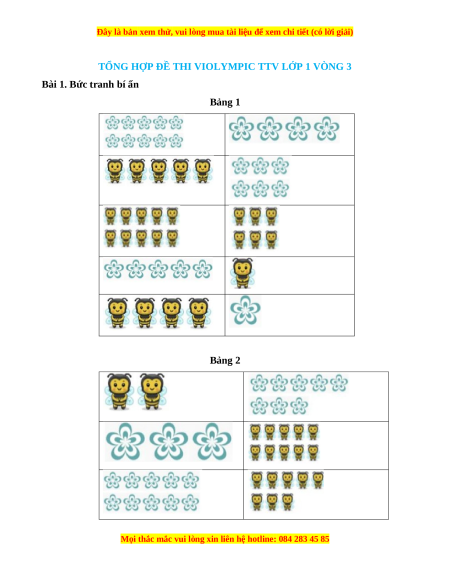 TỔNG HỢP ĐỀ THI VIOLYMPIC TTV LỚP 1 VÒNG 3