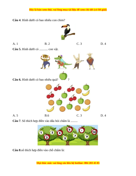Câu 6. Hình dưới có bao nhiêu quả? ? A. 5 B.6 C. 3 D. 4