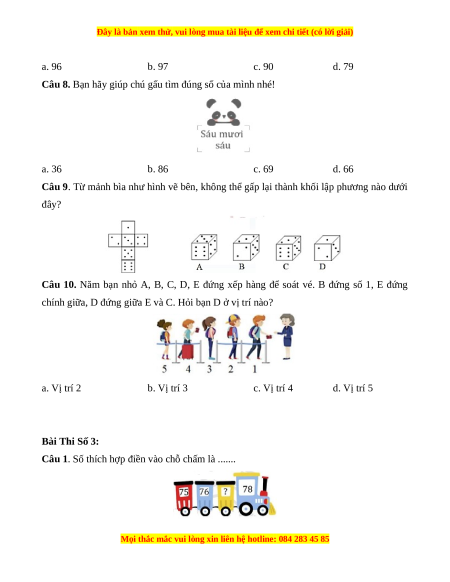 chính giữa, D đứng giữa E và C. Hỏi bạn D ở vị trí nào? a. Vị trí 2 b. Vị trí 3 c. Vị trí 4 d. Vị trí 5 Bài Thi Số 3: