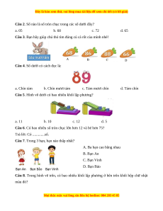 Câu 1. Số gồm 7 chục và 8 đơn vị là: a. 78 b. 87 c. 80 d. 77