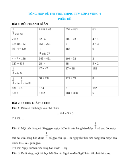 TỔNG HỢP ĐỀ THI VIOLYMPIC TTV LỚP 3 VÒNG 4 PHẦN ĐỀ