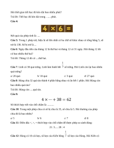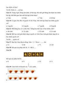 Câu 18: Kết quả của phép tính 36 : 4 + 68 là .... Câu 19: