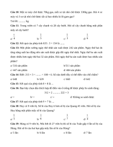 Câu 10: Một xe máy chở được 70kg gạo, mỗi xe tải nhỏ chở được 330kg gạo. Hỏi 4 xe