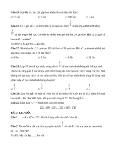 Câu 23: Lớp 3A có 48 học sinh, trong đó có số học sinh thích bóng đá. Số học sinh