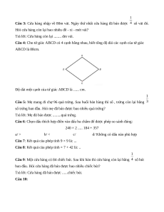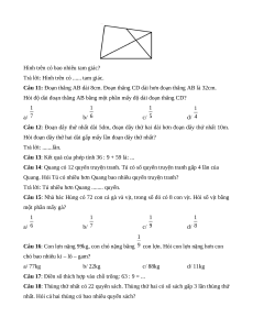 Câu 20: Sợi dây dài 3m dài gấp bao nhiêu lần sợi dây dài 3dm? a/ 10 lần b/ 6 lần c/ 100 lần d/ 1 lần