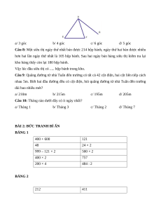 Câu 9: Quãng đường từ nhà Tuấn đến trường có tất cả 42 cột điện, hai cột liên tiếp cách