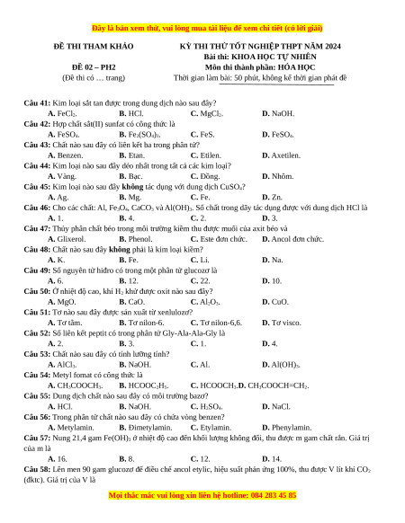 Đề Tốt nghiệp Hóa học 2024 theo đề tham khảo (Đề 2)
