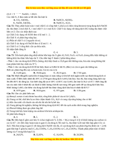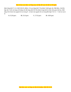 Câu 65: Hỗn hợp gồm a mol Cu và b mol Fe2O3 tan hết được trong dung dịch HCl. Tỉ lệ (a : b) nào sau đây là không hợp lí? A. 0,75. B. 0,5. C. 1,25. D. 1.