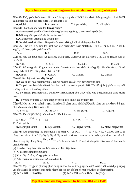 Câu 71: Cho phản ứng sau theo đúng tỉ lệ mol: X + 2NaOH