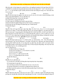Câu 57: Chất nào sau đây làm mềm được nước cứng có tính cứng vĩnh cửu? A. NaCl. B. NaNO3. C. Na2CO3. D. Na2SO4.