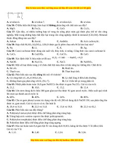 Câu 52: Chất nào sau đây được dùng để làm mềm nước có tính cứng vĩnh cửu? A. Ba(OH)2. B. NaOH. C. HCl. D. Na2CO3.