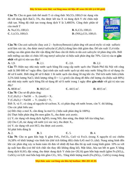Câu 75: Cho m gam tinh thể muối T có công thức M2CO3.10H2O tác dụng vừa