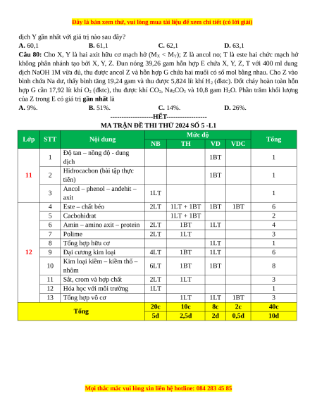 Bài thi: KHOA HỌC TỰ NHIÊN ĐỀ 05 – L1