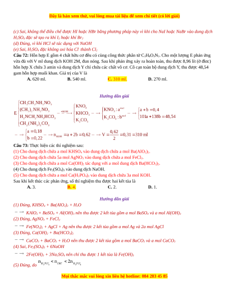 Câu 72: Hỗn hợp E gồm 4 chất hữu cơ đều có cùng công thức phân tử C2H8O3N2. Cho một lượng E phản ứng
